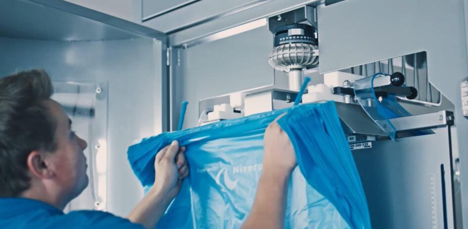 受益于EasyPlast機器系統,只有一側的袋子被夾起,另一側仍留在儲袋處。